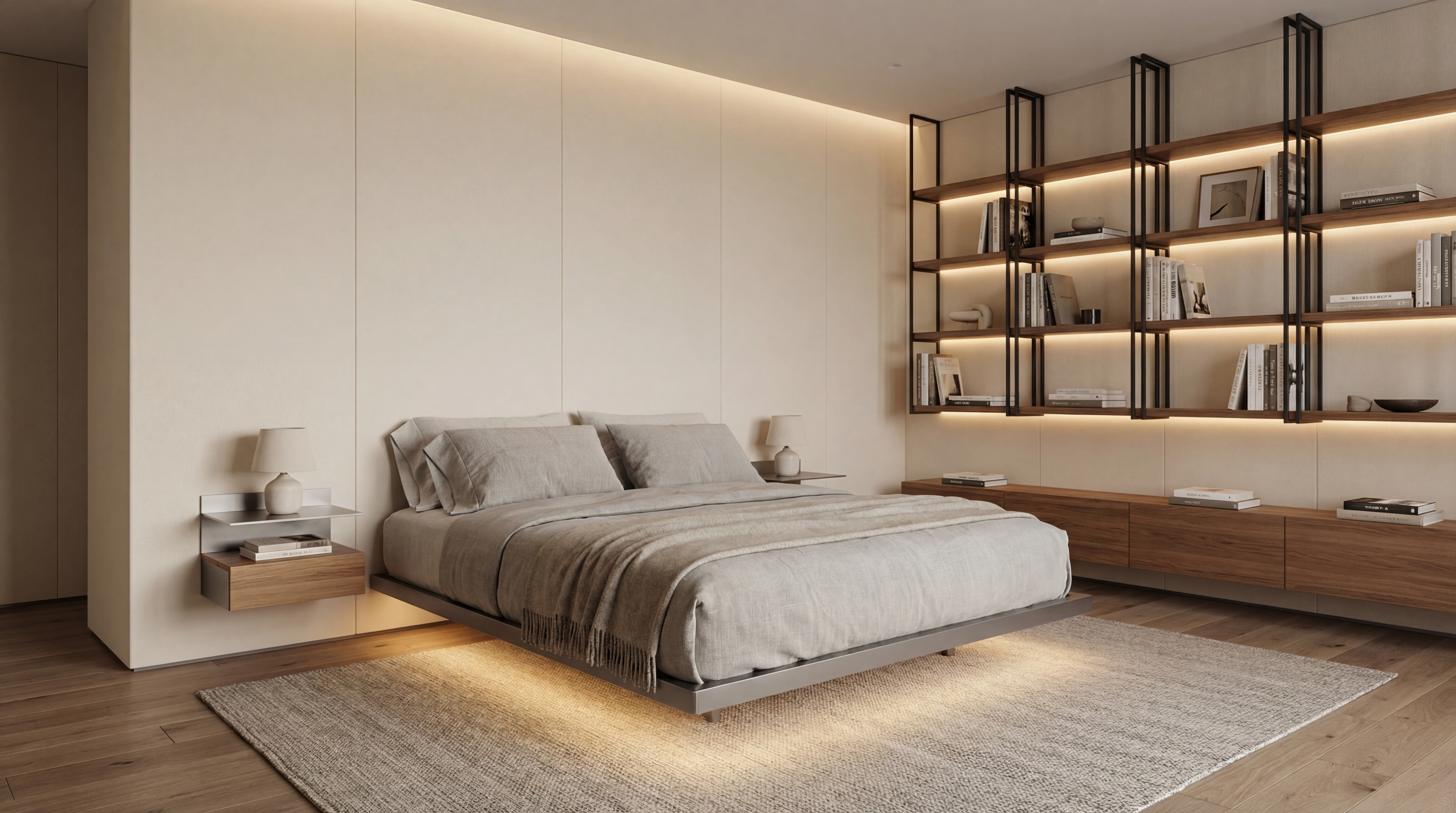 Pevný základ, který nese prostor ložnice. Ocelový rám dává posteli jistotu, ticho a nenápadnou eleganci.